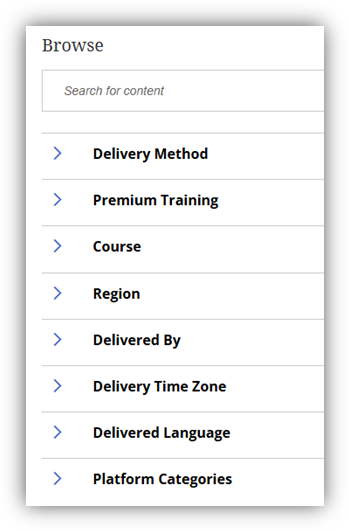Search for the course of your choice either by typing in the name or using a filter:
