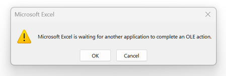 I have to create a task manager build that does not include weekends in the duration. We have tried adding the weekends to holiday profiles and excluding them from the explicit day map, but the duration will always include the weekends. Right now, I have due dates on weekends an holidays even when calling them out in the Holiday Profile and setting each one with an offset of 1. Is there a work around for this or any other solution to have the durations skip weekends/ due dates not be due on weekends or holidays?hannahsam2 days agoNew Contributor II100Views1like3CommentsMicrosoft Excel is Waiting for Another Application to Complete an OLE Action