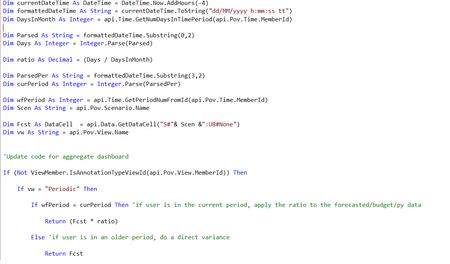 Hello, The client would like to view forecasted, budgeted and PY data based on a ratio that takes into account current day of the month for Periodic and YTD data. Below, is a functioning calc. ...