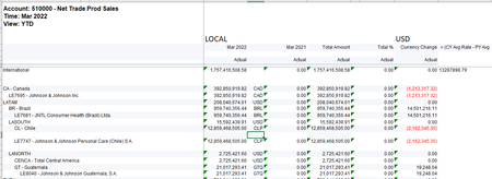 - Split the view into multiple rows, one for each parent followed by one for the children. Then, in the parent row, use Sum of rows to calculate a sum of the children rows. This only works if those values are already usd though.