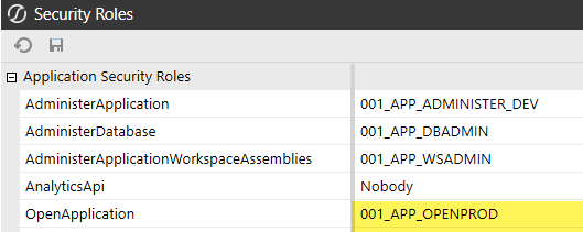 To configure who accesses what, I though I had to assign a security group to the 'OpenApplication' setting within the Security Roles interface, but it seems like it's not working.