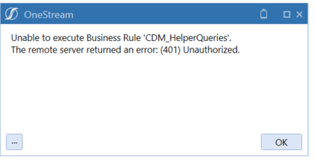 As CDM relies on the OneStream REST API as its transfer mechanism I would imagine that you have not provided the correct authentication requirements to connect to the target cube