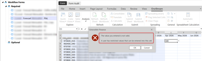 And any user trying to enter a value outside the allowed range of the list will receive the following error message :