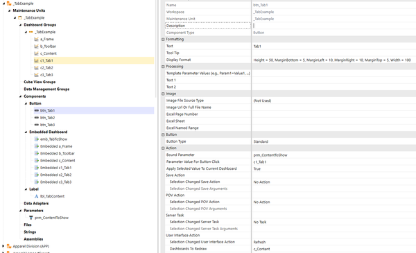 ... and the buttons pass a value to that parameter and trigger a refresh of the dashboard we want to refresh e.g c_Content.