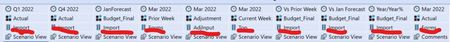 Hi All,   I am using  Import , Forms and AdjInput   for Different columns in One Cube View but I want to Hide those names in the Cube View which are highlighted in Red color in the below picture,...