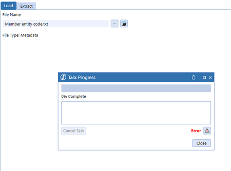 I get this error message when trying to load metadata, it has worked on other applications so not sure why this one isn't working?