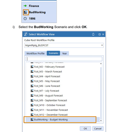 The requirement is to select the BudWorking-Budget Working ...