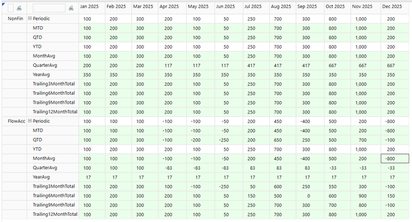 For Non Financial or Balance accounts you can use the V# members to pull Month Avg, Quarter Avg, etc. as shown below.
