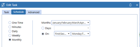 Hi all, Can we schedule a task to run on a business day each month, for example, between the 1st and 7th? I know we can set it for specific days and weeks, but is there a way to make it more dynamic...