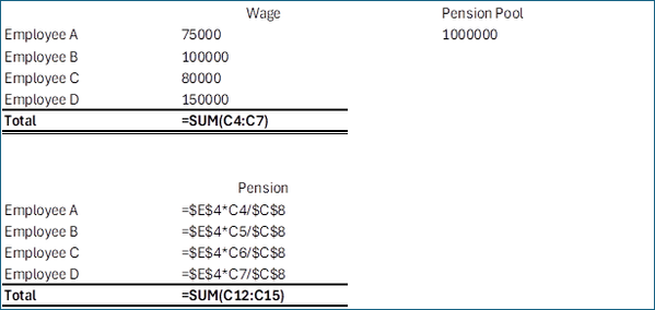 In People Planning, is there a way to sum all the values in either the PLP register or calc plan for all employees to get a total to calculate an allocation. My client would like to allocate a Pension Pool by the Employee’s Wage / Total Employee Wages. I am trying to find a way to calculate the Total Wages for all Employees using Allocation Methods as they run by RegisterID/CalcPer. Any ideas.