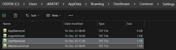 Windows folder - C:\Users\ID\AppData\Roaming\OneStream\Common\Settings