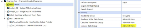 this must be because the DM job is running a custom calculate business rule. In order to run a custom calculate, the user needs access to the destination scenario's manage data group setting. The manage data group security role also is meant to control who can run a reset scenario DM job. I would personally be comfortable with setting the Manage Data Group setting to everyone (or a security group of users that run custom calcs) as long as these users don't have access to the data management application page. ultimately with the Manage Data Group setting, you want to be careful and ensure that a user cannot execute an existing reset scenario DM job via the DM job page or create and run their own reset scenario DM job. The goal is to allow users to run custom calcs, but also ensure a user cannot go rouge and run a reset scenario job. These are the two process affected by the Manage Data security group.