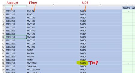 with the name keyword, |MFFlow|, |MFUd5| or |MFFlowDesc|, |MFUd5Desc| , you even can show a combined row header: F#pycybal:Ud5#TG304:name(|MFFlow| - |MFUd5|), ..., F#fxint:Ud5#tg304:name(|MFFlow| - |MFUd5|), F#MVTCALC:Ud5#Top:name(|MFFlow| - |MFUd5|), F#clbalinp:Ud5#TG304:name(|MFFlow| - |MFUd5|)