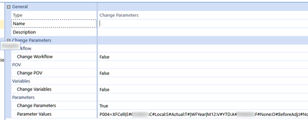 You can use the "Change Parameter" function and it will work just like in BIV dashboard, meaning that you can assign a value, or just like I did you can affect an XFCell that would refer to the Loop1Variable (if you have a variable being looped). This is important to do this otherwise the dependant parameter will not be updated