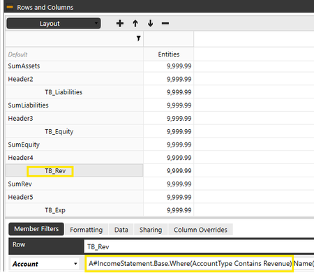 Hello all, I've written a Member Filter Builder on A#IncomeStatement.Base.Where(AccountType Contains Revenue). A second one for Expense too. I am now trying to sum those rows and cannot seem to get...