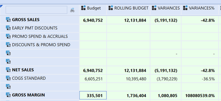 For those, you can place two column overrides in your gross margin row, one for variances and the other for variances%, and mention the CVC formulae so that it picks up the relevant getdatacell.