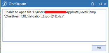 OneStream will invoke a standard Windows call to handle the file, i.e. it will push it to Windows and say "open this file with the default program for this extension (xlsx) please". If Windows does not allow that for whatever reason, the operation fails.