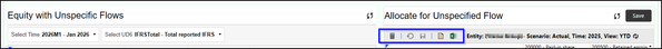 The report on the left is the source cv and report on the right is the drill down details when a cell is clicked on the left. You can see that there is no taskbar for excel download etc in the left report, even though I have set cv default header to be visible.