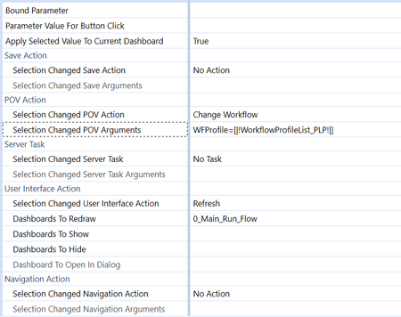 Now, after I select a value from the drop down, clicking the button refreshes the dashboard (so the label displays the new value) and sends me to the new Workflow.