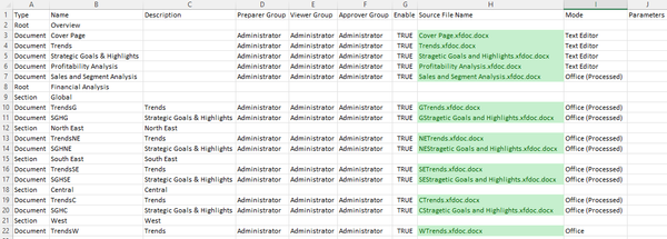 I am using the Termplate to create the Root/Section/Document structure.