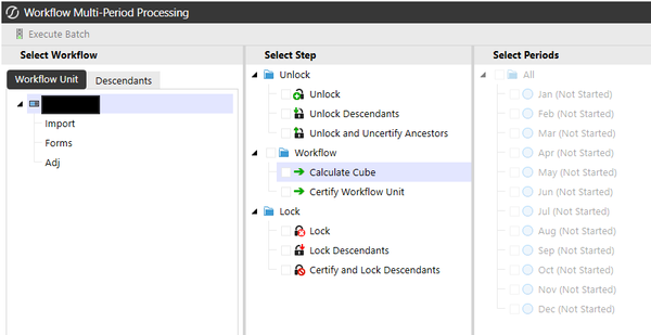 we were able to open the pages for specific time (YYYYMM) and the different steps Import, forms, Adj. But what about the Multi-Period processing which is exeucted at the year level (e.g. 2025)? Which is the Workflow name to use in the Change POV and Workflow button POV Action?