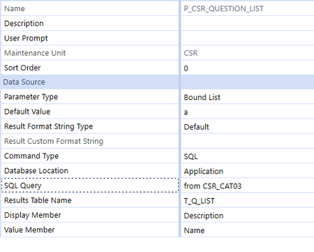 My parameter is set in order to get a column from an SQL table. When I test the parameter, this is working fine.