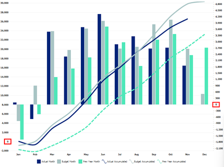 Hi everybody, Below you can see a graph created for a client. A question coming from them is that they want to align the 0 points (highlighted) of both the primary (left) axis and the seconda...