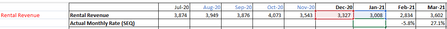 Dim RentalRevenueTrailing1Mo As Decimal = api.Data.GetDataCell("A#NetIncome:U4#[Rental Revenue]:S#Actual:T#POVPrior1").CellAmountReturn RentalRevenue/RentalRevenueTrailing1Mo - 1
