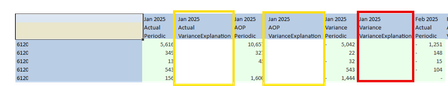 What about with calculated fields? Would that be helpful at all? Like if we created a dedicated Actuals vs AOP calculated member? and then used V#VarianceExplanation to record the explanation there? I'm not sure if that would work, but it was just a thought / idea? Still rather new here and trying to understand everything that is possible.