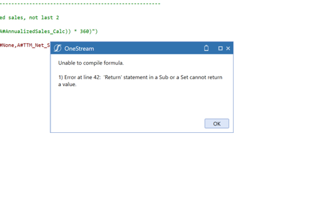 Im trying to create a formula for one of our Statistical Cal accounts.  Its a derivation of of a calc we already have.  However the line will no compile even when I copy the existing formula complete...