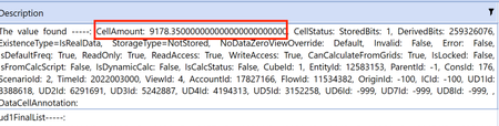 Hi, I'm trying to get the amount of an objDataCellInfoUsingMemberScript but I couldn't get the data, I'm trying this: objDataCellInfoUsingMemberScript = BRApi.Finance.Data.GetDataCellUsingMemberScri...