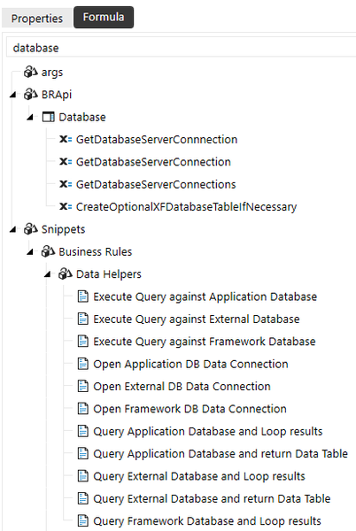 ' Declare StringBuilder Dim sb As New Text.StringBuilder() ' Declare SQL Dim sql As String = "SELECT DISTINCT [DatabaseName] FROM [dbo].[XFW_OSD_DatabaseSizes] ORDER BY [DatabaseName]" 'Open connection to Framework database Using dbConnFW As DBConnInfo = BRApi.Database.CreateFrameworkDbConnInfo(si) Using dt As DataTable = BRAPi.Database.ExecuteSql(dbConnFW, sql, True) If Not dt Is Nothing Then For Each dr As DataRow In dt.Rows 'Process rows sb.AppendLine(dr("DatabaseName")) Next Else sb.AppendLine("No applications found.") End If sb.AppendLine(String.Empty) sb.AppendLine($"Total Applications {dt.Rows.Count}") Throw New XFUserMsgException(si, String.Empty, String.Empty, sb.ToString()) End Using End UsingHope this helps