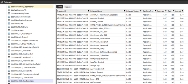 If we take your OSD example, as you have this installed, there is a table here called [dbo].[XFW_OSD_DatabaseSizes], but if we take a look at this table, we have multiple instances of the same Database Name e.g. AppBuildStudent (in my example below)