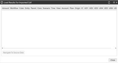 We are having an issue when using the Drill Down option from a Cubeview, and it's that after getting to a base data cell within the Drill Down window, and then trying to navigate to stage using the "Load Results for Imported Cell", the results window is displayed empty: