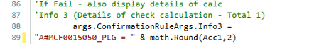 "A#MCF0015050_PLG = " & Acc1.ToString("#,###.00")Here is the decent read on formatting: