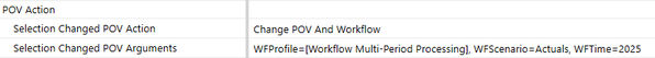 we were able to open the pages for specific time (YYYYMM) and the different steps Import, forms, Adj. But what about the Multi-Period processing which is exeucted at the year level (e.g. 2025)? Which is the Workflow name to use in the Change POV and Workflow button POV Action?