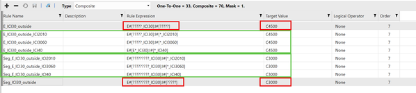 Requirement: There is an entity with 5 characters with suffix _ICI30 that needs to map to C4500 if the IC has 5 characters, and another with 9 characters with suffix _ICI30 that needs to map to C3000 if the IC has 5 characters.