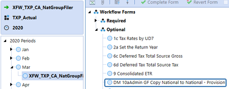 The following has been taken from the Tax Provision Blueprint "Instruction Guide" starting at page 195. See KB article: "Tax Provision Blueprint Instruction Guide - PV7.3.0 SV100" See KB article: "Data Integration" Dashboard DM 20a – Provision Data: National (Group Filing: Yes or No) to Local (No GF) Select a WF entity and a Local Jurisdiction that you want the National Provision data to be copied into. This schedule can only copy or clear one POV at a time. The bottom section of the toolbar may have a “timestamp” with the last time a “bulk” copy or clear was executed. This can only be done via Sch DM20aAdmin. After a copy is completed, a 1 is entered to account TXP_Data_Copy_20a. A Cube View is supplied in the dashboard to show the user which Local Jurisdictions have copied data. There are three rows to help explain the variance for data that has been entered in local only permanent or temporary difference accounts. We have created a flow member called “TXP_ConfirmBal_001” that holds the copied flow members. This parent member is strictly used to expand or collapse a row in the CV. The aggregated value is meaningless but shows you where there is data.DM 30b1 Admin – Return Data: National Group Filer to Local Group Filer