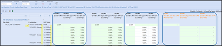 The following has been taken from the Tax Provision Blueprint "Instruction Guide" starting at page 318. See KB article: "Tax Provision Blueprint Instruction Guide - PV7.3.0 SV100" See KB article: "01c2Admin Deferred Tax Rates" 01c1Admin CY Tax Rates This Admin schedule is used to copy either the “Prior Year Closing Deferred Tax Rates” or the “Prior Year Closing CY Rates” into period “1” (Jan. for the Tax Provision Blueprint app) for the CY Tax rates. We have made this schedule to only appear in the first time period of the workflow year. This schedule can be used as a starting point to bulk populate the CY Tax Rates. Manual adjustments can then be entered. The Copy rule populates the “O#Import” member. If you need a different amount after the copy, enter in the new YTD (total) amount and the difference will go to “O#Forms”. This schedule displays the “O#BeforeAdj” member. Once the copy is done, the last three columns will show if there are any variances. Right after a copy is performed, there should be no variances. If you then manually adjust a tax rate, then a variance will display. The Consolidated ETR Rate is displayed for informational purposes and is “Read” only in this schedule. The “Clear” button will clear the CY tax rates (at O#Import) that were previously “Copied” into. Any manual data input will still be left in the system. So, care should be taken when clearing and re-copying data. If you don’t see an expected entity / jurisdiction / group filer combination, then right click in a row header cell with an orange triangle and select “Insert Suppressed Member”.DM 30b1 – Return Data: National Group Filer to Local Group Filer
