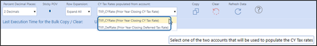 The following has been taken from the Tax Provision Blueprint "Instruction Guide" starting at page 199. See KB article: "Tax Provision Blueprint Instruction Guide - PV7.3.0 SV100" See KB article: "Data Integration" Dashboard DM 20b2 Admin – Return Data: National Group Filer to Local (no Group Filing) Select a WF entity and a Local Jurisdiction that you want the National Provision data to be copied into. If the “All Entities” check box is selected, then all the entities in the combo box, all the local JDs and all the UD7 members associated to each entity will be copied or cleared for the selected RTP Year. It does not matter what is in the POV; the check box supersedes the POV. We refer to this as a “bulk” copy or clear. If the “All Entities” check box is not selected, then only the POV selected in the combo boxes will be copied or cleared. The bottom section of the toolbar will update with a “timestamp” with the last time a “bulk” copy or clear was executed. The timestamp will not be updated if the “All Entities” check box is not selected. After a copy is completed, a 1 is entered to account TXP_Data_Copy_20b2 A Cube View is supplied in the dashboard to show the user which Entity, National Jurisdiction, Group Filer entity (UD7) has been copied to which Entity, Local Jurisdiction, None (UD7). You must select the RTP Year that you want to process. The JD RTP year/month is pulled from Schedule 2 Set the Return Year The RTP year drives the copy / clear business rules. The JD RTP period is for informational purposes only. As each Local Jurisdiction can have a different RTP year/month, the cube view only shows the current jurisdiction. The last three columns help explain the variance for data that has been entered in local only permanent or temporary difference accounts.